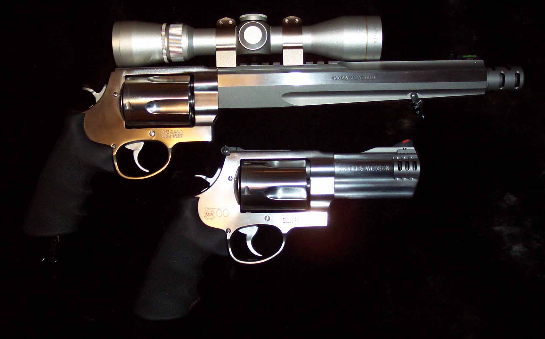 The big one (S&W 460 Performance Center Hunter W/Leupold Vari-X Scope) Shoots flat from 25 to 250 yards The "little" one (S&W 500 Mag ) shoots incredibly well...